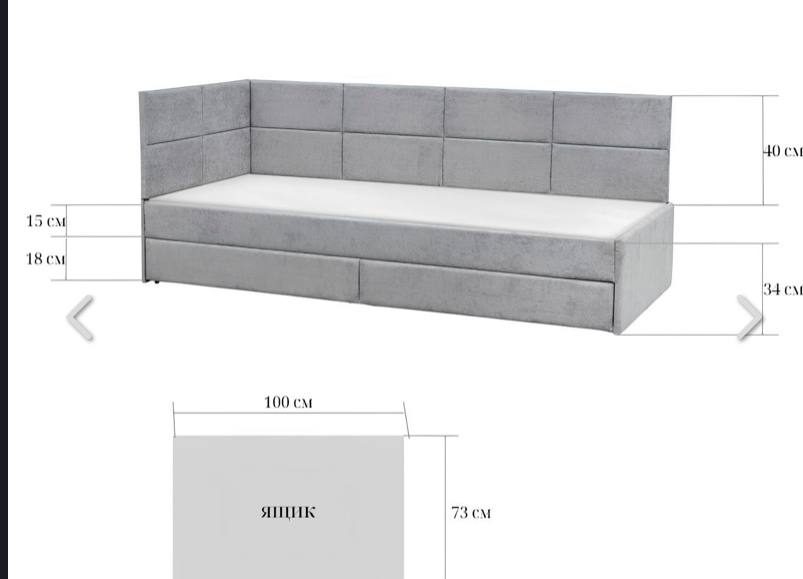 Габаритні розміри: до ширини + 50 мм; до довжини +50 мм; З двома ящиками Розмір спального місця 800*2000